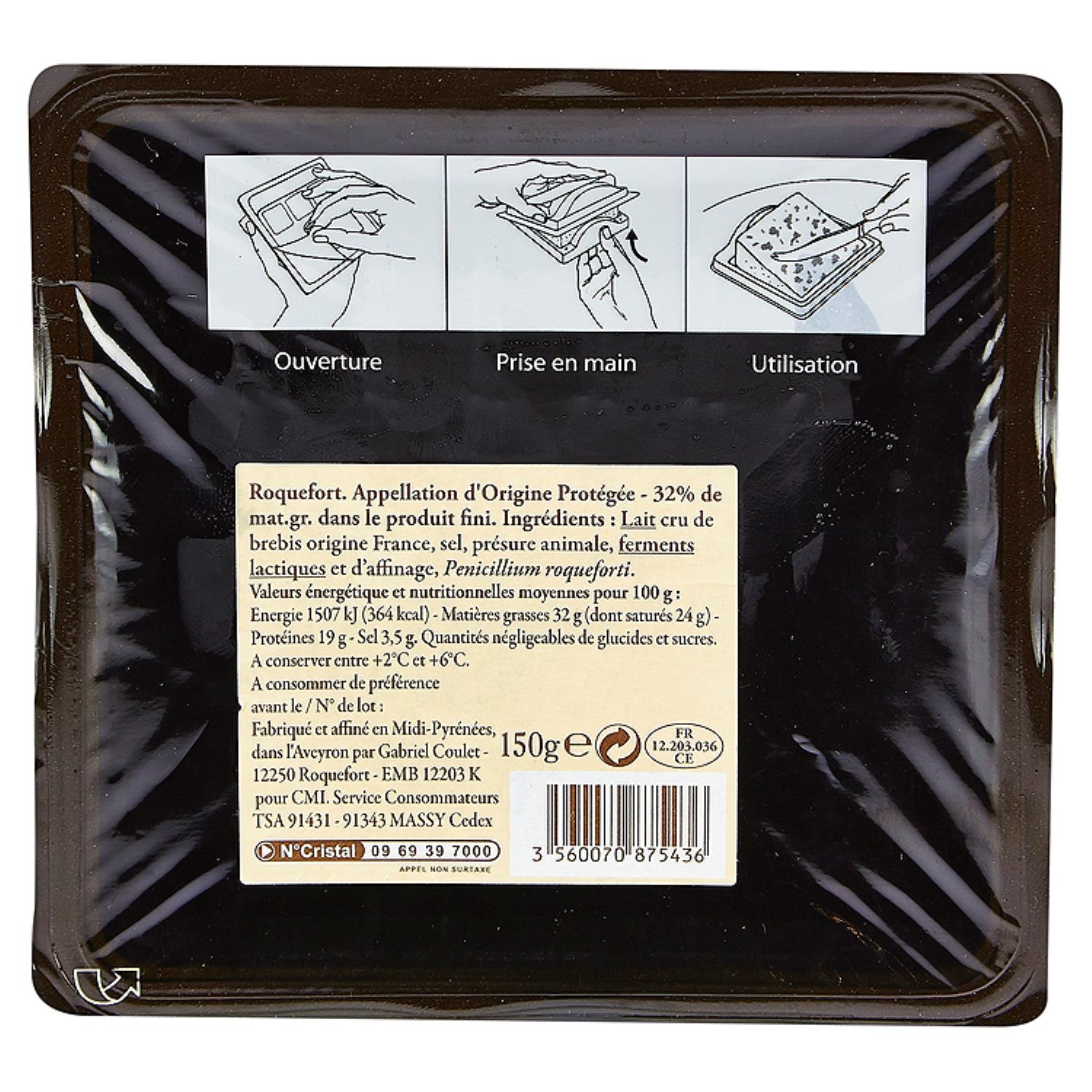 Specifikacija: Avių pieno sūris Roquefort AOP