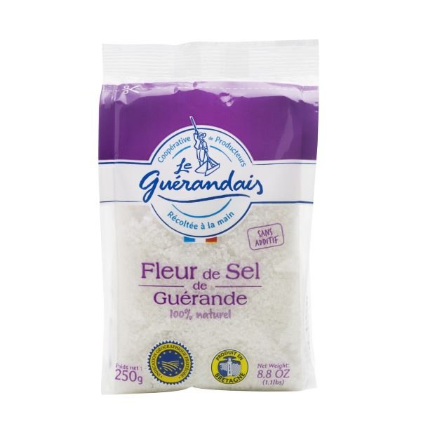 Ši jūros druska yra subtiliai surenkama iš vandens pagal tūkstantį metų senumo tradicinį metodą. Dėl trapios pusiausvyros tarp vandenyno, saulės ir vėjo “Fleur de sel” yra natūraliai balta druska, reta ir išskirtinės kokybės.