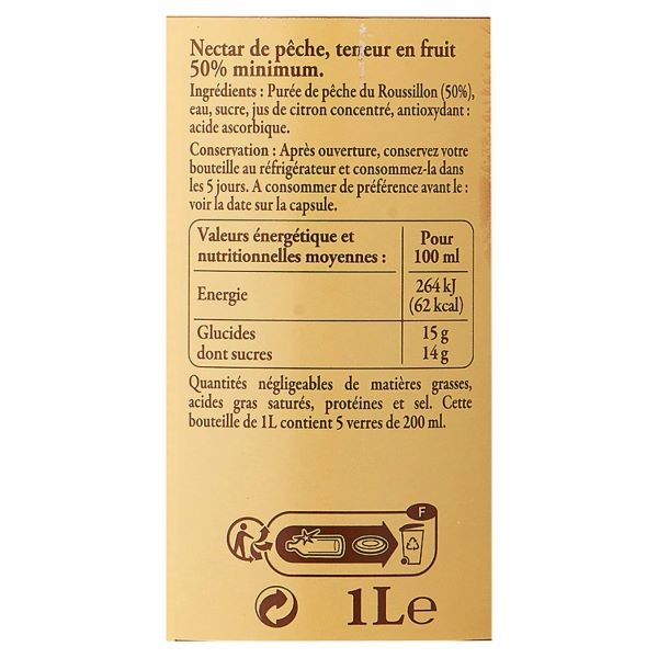 Specifikacija: Geltonųjų persikų nektaras iš Roussillon