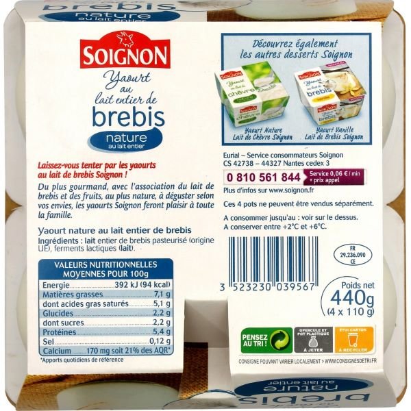 440 g, pakuotėje 4 indeliai x 110 g, Kilmės šalis: Prancūzija