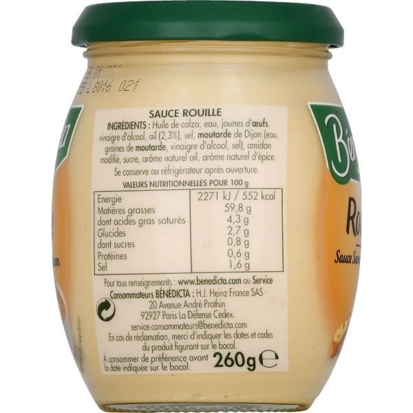 Sudėtis: Sudėtis: rapsų aliejus, vanduo, kiaušinių tryniai, alkoholio actas, česnakai (2,3%), druska, Dižono garstyčios, natūralus česnako skonis, natūralus kvapas (žuvies).