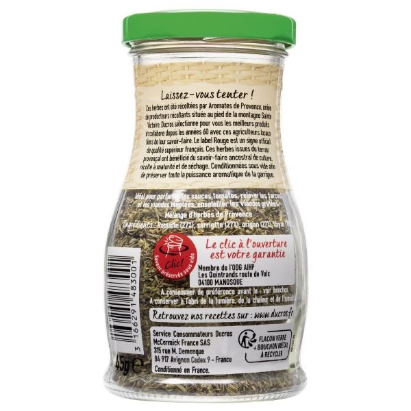 Šios žolelės yra gautos iš 4 aromatinių augalų, auginamų Pietų Prancūzijoje, (rozmarinų, dašių, raudonėlių, čiobrelių) mišinio ir buvo kruopščiai parinktos pagal jų eterinio aliejaus kiekį. Pridėkite virimo pabaigoje, kad išsiskirtų gausūs žolelių aromatai.