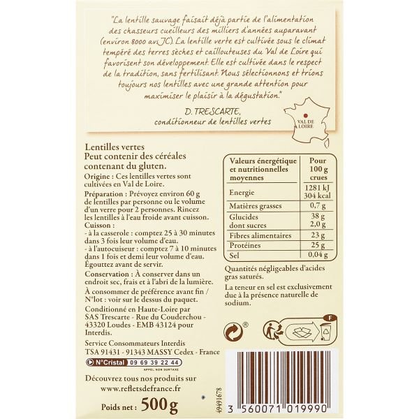 Specifikacija: Žalieji lęšiai iš Luaros slėnio